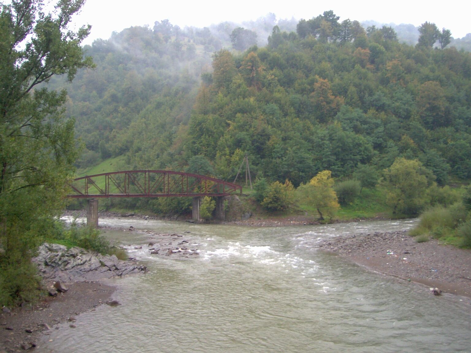 Початок Тиси (тече до спостерігача) при злитті Чорної Тиси (ліворуч, витікає з-під мосту) та Білої Тиси (праворуч).