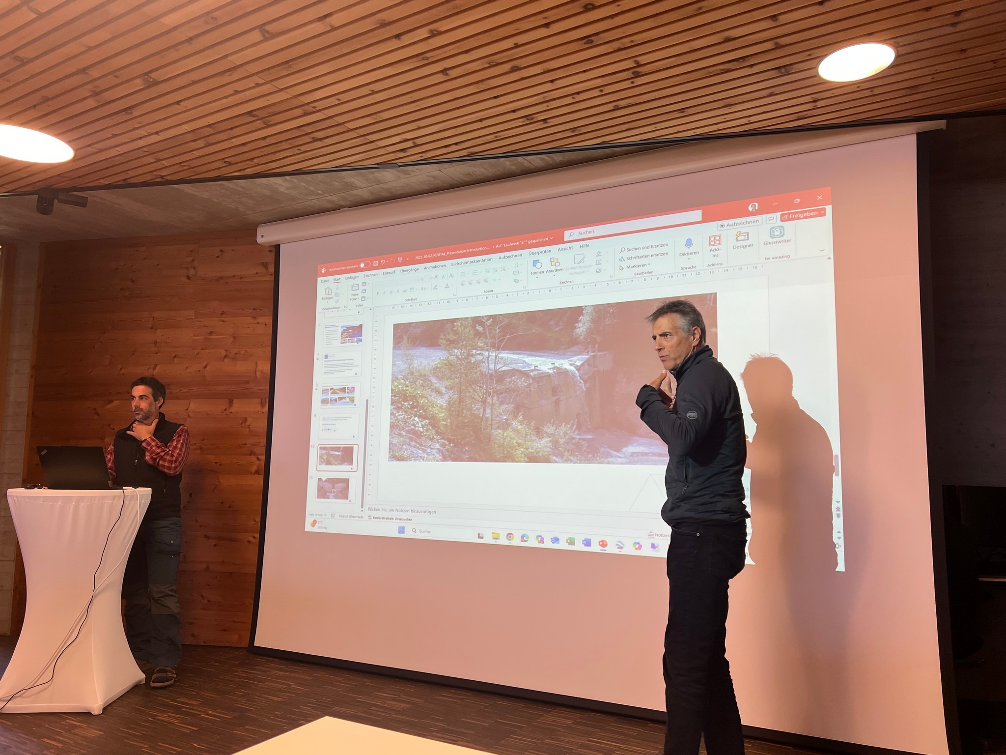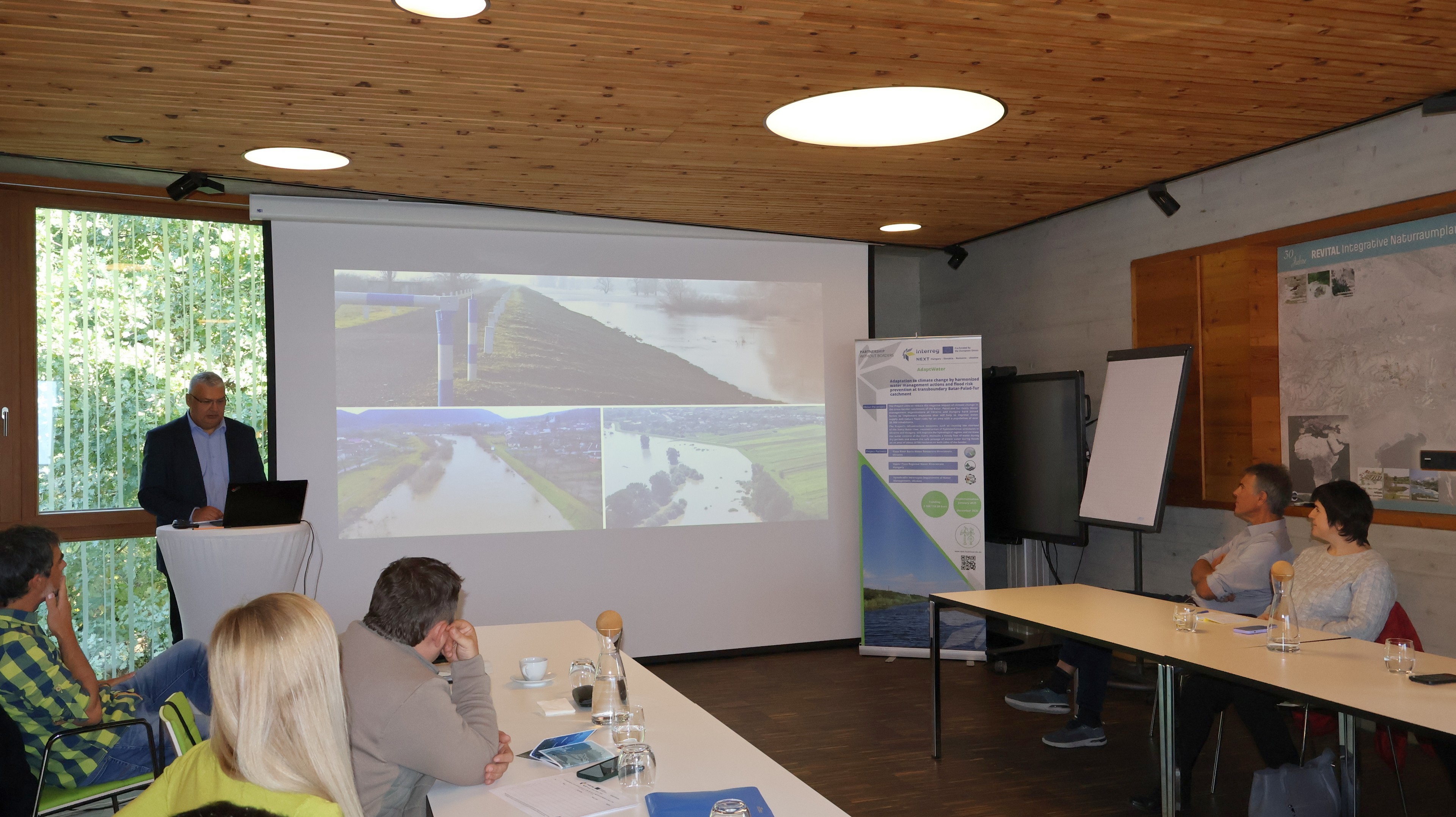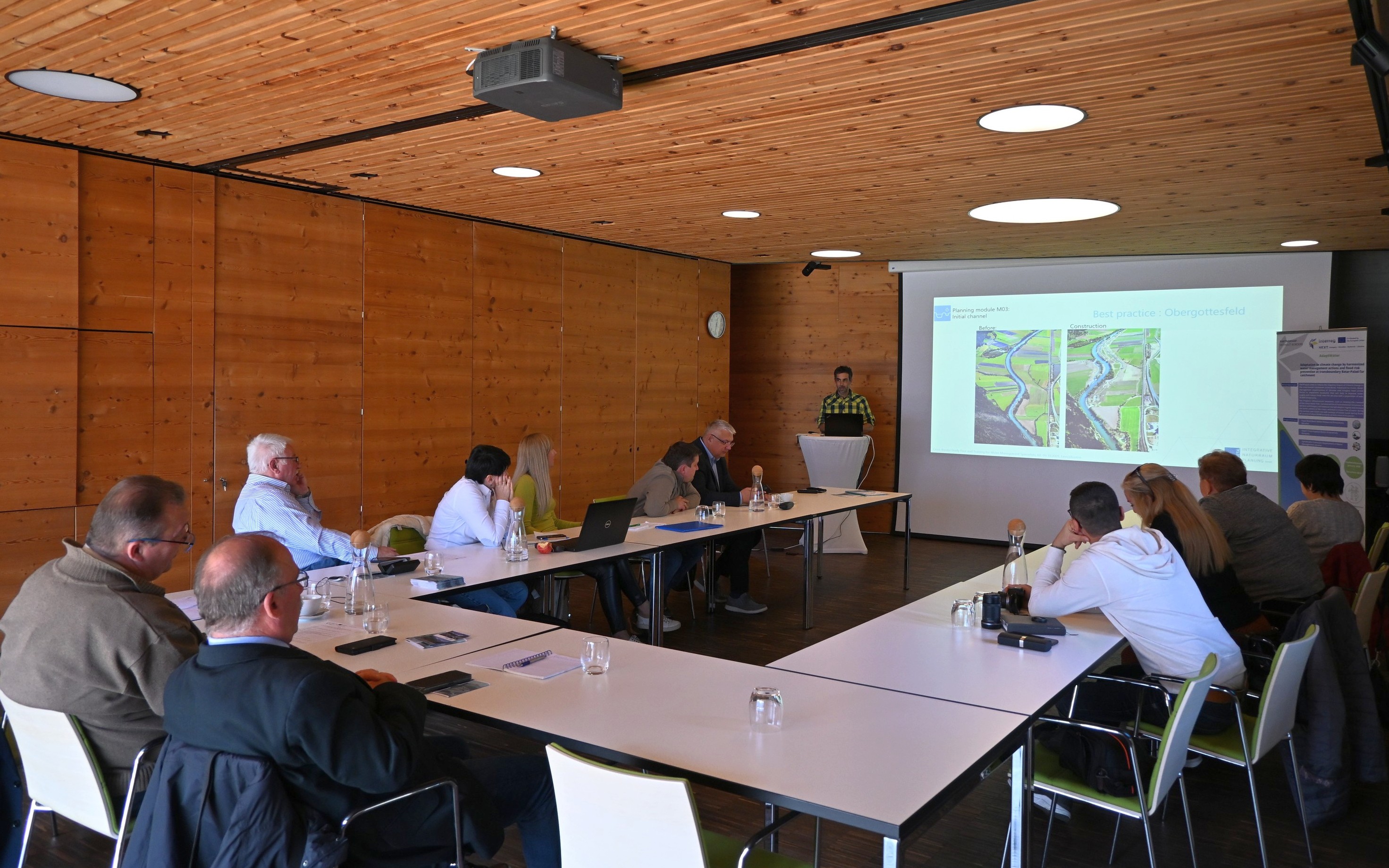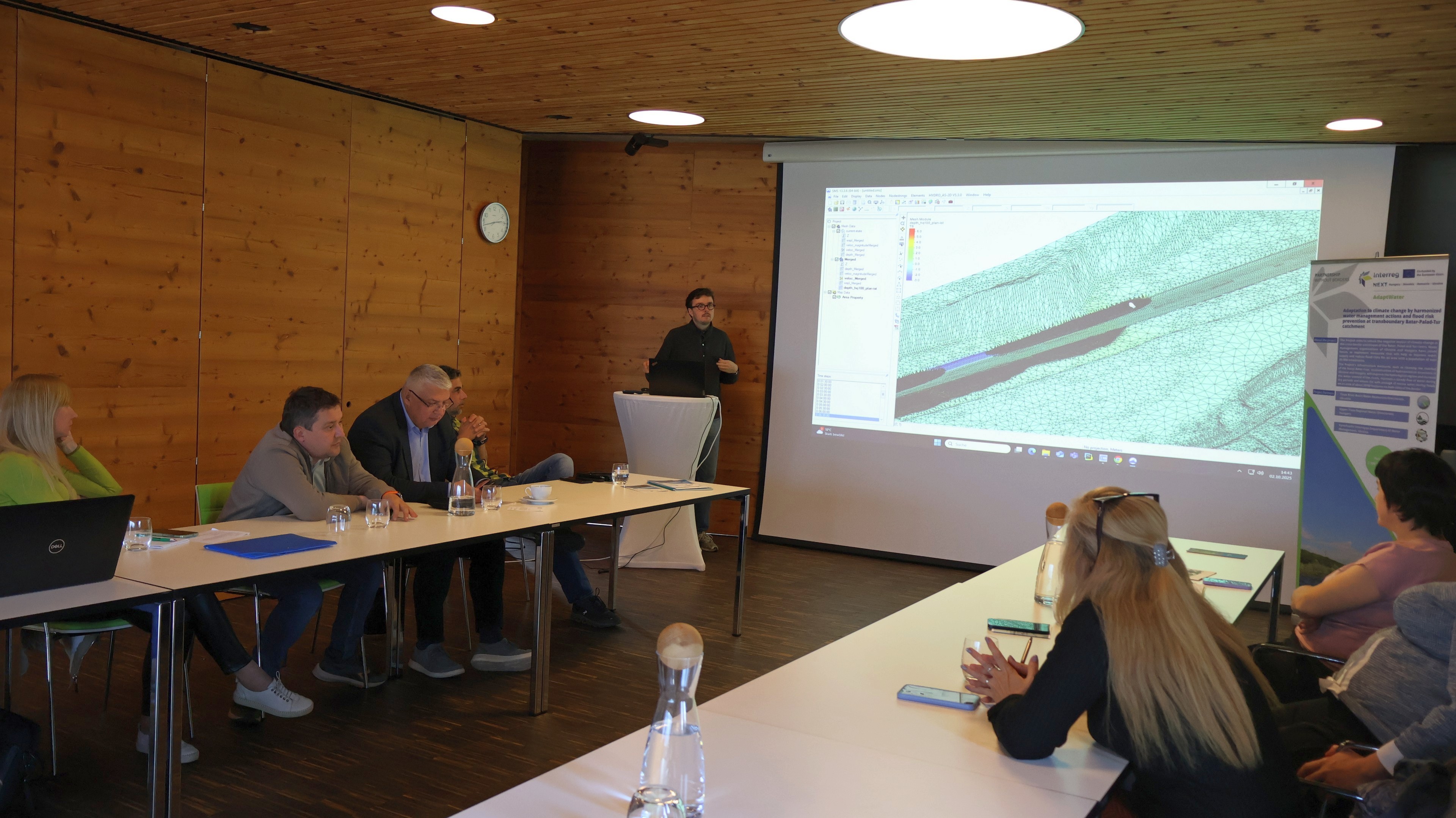 Для міжнародної групи експертів проєкту AdaptWater цікавими і пізнавальними стали презентаційні виступи Клауса Міхора та керуючого директора з питань сільськогосподарської інженерії та водного господарства Стефана Сенфтера з представлення професійного досвіду компанії у сфері управління водними ресурсами у басейнах гірських річок, відновлення річкових басейнів, складання проєктів з врахуванням вимог водної політики ЄС, зокрема Водної Рамкової і Паводкової Директив ЄС, представлення практичного та наукового досвіду природо-орієнтованих рішень у галузі водного господарства. Для ознайомлення були наведені конкретні приклади реалізованих та діючих проєктів для запобігання ризику затоплення в річкових басейнах, відновлення річок та заплав, акумуляції паводкового стоку, адаптації до змін клімату, моніторингу та управління річковими наносами, комплексного планування гідротехнічних водогосподарських споруд на річках з поєднанням їх функцій захисту від природніх лих, різноманітного використання, в тому числі для малої гідроенергетики та екологічного середовища існування.