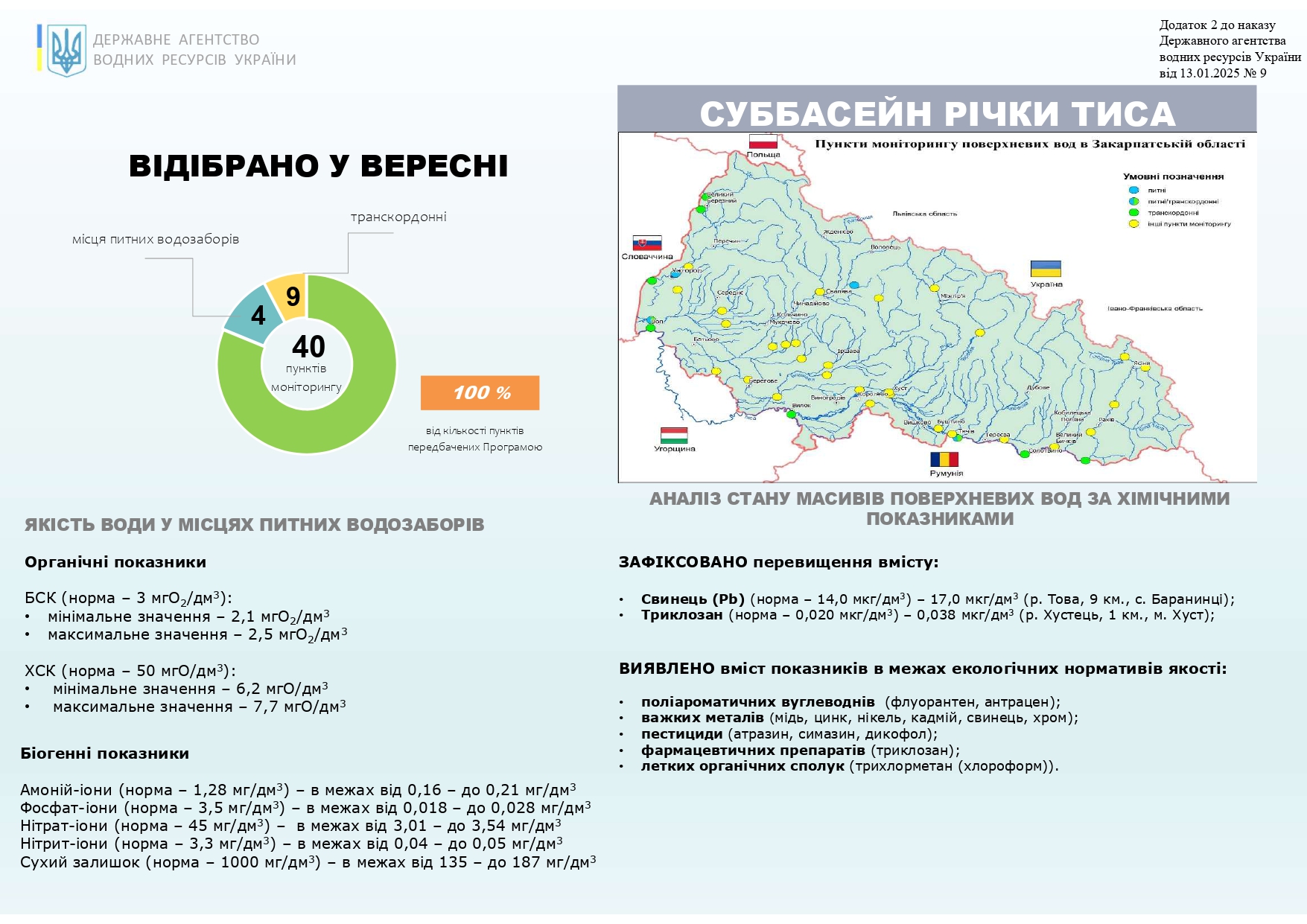 Аналітичний огляд якісного стану масивів поверхневих вод суббасейну річки Тиса за вересень 2025 року