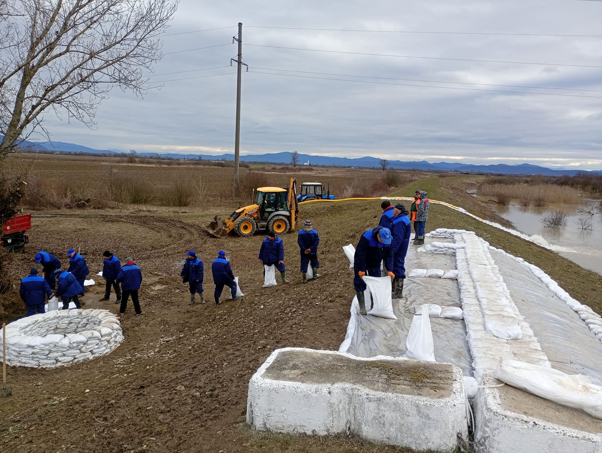 Органи управління та служби цивільного захисту відпрацювали алгоритм реагування на паводок 25 лютого 2026 року органи управління та сили цивільного захисту Берегівського району відпрацювали дії під час надзвичайної ситуації. Навчання, що пройшли під керівництвом голови Закарпатської ОВА Мирослава Білецького та голови Берегівської РВА Віталій Матія, стали іспитом на готовність до реальних паводкових викликів. Важливим етапом навчань стало розгортання системи управління в умовах загрози. На базі Центру з протипаводкового захисту Басейнового управління водних ресурсів річки Тиса було організовано роботу комісії з питань техногенно-екологічної безпеки та надзвичайних ситуацій (ТЕБ та НС) при Берегівській районній військовій адміністрації. Це дозволило забезпечити оперативний збір даних, аналіз гідрологічної ситуації та швидке прийняття управлінських рішень. Відповідно до сценарію на річці Батар у Пийтерфолвівській громаді, дві аварійні бригади Виноградівського міжрайонного управління водного господарства, у кількості 24 чоловік, продемонстрували повний цикл протипаводкових робіт: Укріплення дамби: у місці можливого переливу було оперативно влаштовано захисний вал із мішків з сипучими матеріалами та використано поліетиленову плівку для захисту гребеня та укосу дамби від розмиву. Локалізація фільтрації: у місцях просочування води фахівці облаштували спеціальний фільтраційний колодязь. З метою ліквідації умовної загрози було задіяна пересувна насосна станція СНВ(д)140/10 для відкачування внутрішнього паводкового стоку, екскаватор-навантажувач JCB-4CX, автомобіль Газель, Mitsubishi L-200, Hundaj, трактор МТЗ-892 з причепом 2 ПТС4, використано 1000 мішків, 18 м³ піску та 25 м² плівки. Також на локацію було вивезено шандорні затвори. Загалом у тренуваннях взяли участь майже 200 фахівців та понад 50 одиниць техніки. Було відпрацьовано алгоритми взаємодії з рятувальниками ДСНС, синоптиками, медиками та правоохоронцями. Окремо забезпечувався контроль за заходами охорони праці та безпеки в умовах воєнного стану. Проведені навчання підтвердили високу оперативну готовність і фаховий рівень усіх залучених підрозділів. Взаємодія між фахівцями БУВР Тиси, Виноградівського МУВГ, рятувальниками ДСНС, медиками та правоохоронними органами дозволила відпрацювати єдиний механізм реагування на надзвичайні ситуації в умовах воєнного стану.