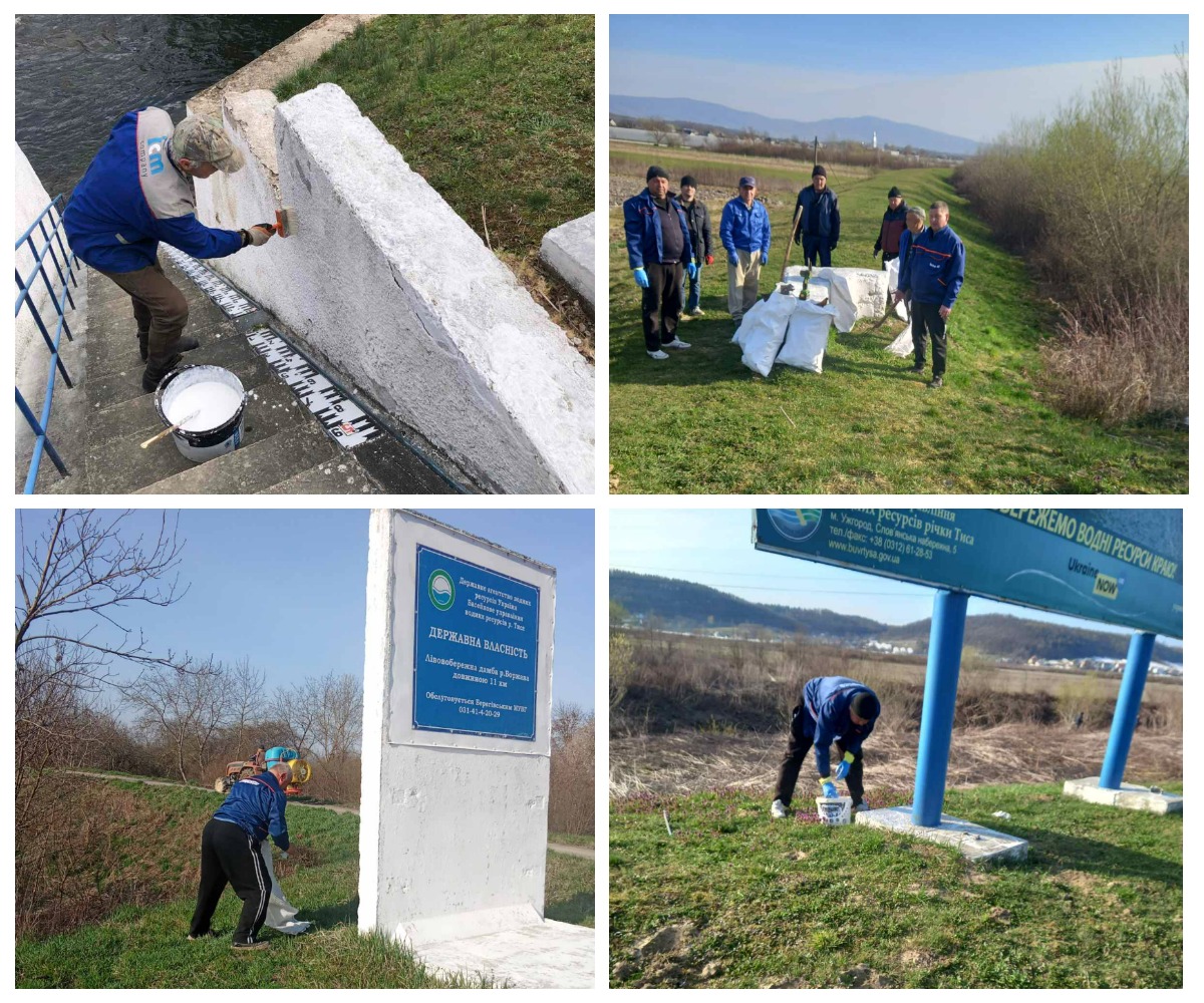 Берегівське, Виноградівське та Ужгородське МУВГ долучилися до акції «Закарпаттю – чисте довкілля» На виконання розпорядження голови Закарпатської обласної військової адміністрації від 17.03.2026 №189 «Про благоустрій населених пунктів, проведення акції «Закарпаттю – чисте довкілля», місячника «Чисті узбіччя» та встановлення єдиного санітарного дня з очищення території області», а також відповідно до доручення Басейнового управління водних ресурсів річки Тиса №06/291 від 19.03.2026, працівниками Виноградівського та Ужгородського міжрайонних управлінь водного господарства проведено комплекс заходів з прибирання та благоустрою територій. Працівниками дільниці «Гірські ріки» Виноградівського МУВГ здійснено очищення прибережно-захисної смуги лівого берега річки Ріка та побілку дерев у селищі Міжгір’я поблизу водомірного поста. Працівники Сальвінської дільниці виконали роботи з благоустрою, що включали прибирання території та побілку сходів на водомірному посту річки Тиса біля автомобільного мосту сполученням Виноградів – Теково. Крім того, на виробничих базах Виноградівського МУВГ проведено впорядкування території: очищення від сміття, побілку бордюрів та обрізку дерев. Працівниками Ужгородського міжрайонного управління водного господарства виконано роботи з благоустрою території адміністративної будівлі та територій насосних станцій: НС-22ЛОС у селі Холмець, НС-1БОС та НС-12БОС у селі Червоне, НС-9БОС у селі Демечі. Оглядачами Берегівської експлуатаційної дільниці Берегівського МУВГ очищено міждамбовий простір річки Боржава поблизу греблі та шлюза-регулятора каналу Верке с.Боржава. Працівниками Іршавської експлуатаційної дільниці проведено очищення прибережної захисної смуги річки Боржава в селі Гребля, здійснено благоустрій території автоматизованої гідрологічної станції в селі Довге, а також оновлено інформаційні знаки на гідротехнічних спорудах. Інженерно-технічними працівниками проведено благоустрій території управління та прилеглої ділянки: впорядковано клумби, побілено дерева та бордюри. Крім того, виконано роботи з упорядкування територій насосних станцій: побілено елементи споруд, проведено обрізку дерев і кущів. Виноградівське МУВГ Ужгородське МУВГ Берегівське МУВГ